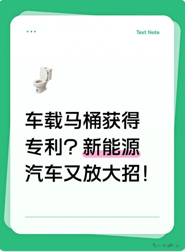 车载马桶专利看似小事,实则折射出新动力汽车行业三大深层转型信号,看懂这些,就明白将来车企怎样拼、用户怎样选。