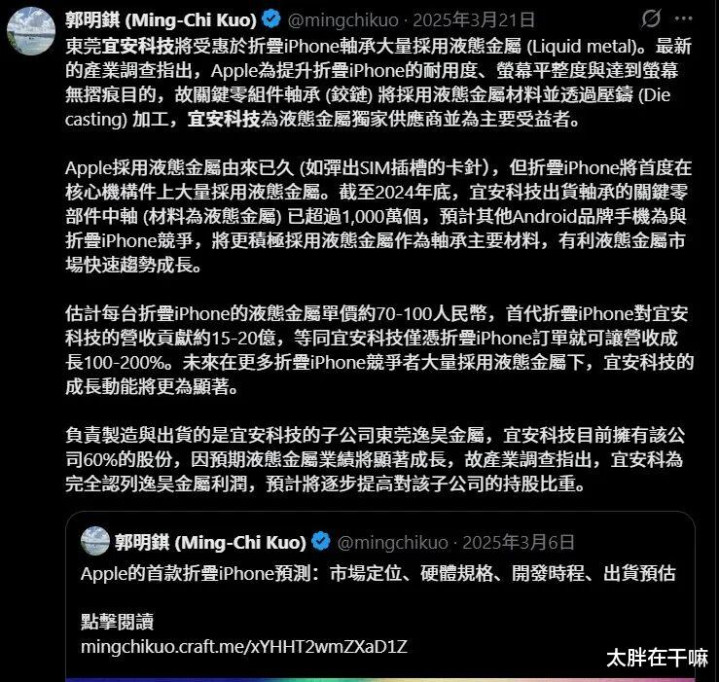 并将首款折叠屏手机定名为iPhone Ultra的相关在各大技巧社区和供应链圈内非常火热。