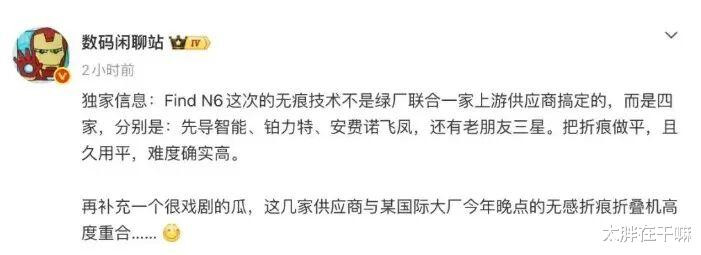 现时无折痕代表则是oppo FIND N6,